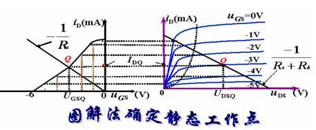將轉移性的近似函數式與根據電路列出的直流電壓方程聯立,就可求解靜態工作點。