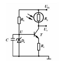 通常,當RL?R時,流過光敏電阻的電流基本不變,此時的偏置電路稱為恒流電路。然而,光敏電阻自身的阻值已經很高,再滿足恒流偏置的條件就難以滿足電路輸出阻抗的要求,為此,可引入如下圖所示的晶體管恒流偏置電路。