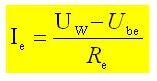 穩壓管DW將晶體三極管的基極電壓穩定,即UB=UW,流過晶體三極管發射極的電流Ie為