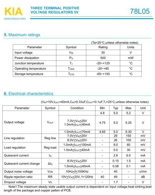78L05 PDF資料-78L05特征、應用領域、電路圖詳解-免費送樣-KIA MOS管
