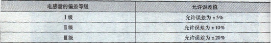 (3)允許誤差:電感量的實際值與標稱之差除以標稱值所得的百分數,,由感量差等級及允許誤差值如表2-7所示。