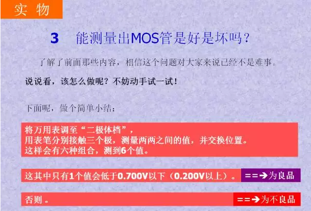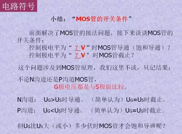MOS管為壓控元件,你只要加到它的壓控元件所需電壓就能使它導通,它的導通就像三極管在飽和狀態一樣,導通結的壓降最小.這就是常說的精典是開關作用.去掉這個控制電壓經就截止. MOS管 MOS管的英文全稱叫MOSFET(Metal Oxide Semiconductor Field Effect Transistor),即金屬氧化物半導體型場效應管,屬于場效應晶體管中的絕緣柵型。因此,MOS管有時被稱為場效應管。在一般電子電路中,MOS管通常被用于放大電路或開關電路。而在主板上的電源穩壓電路中,MOSFET扮演的角色主要是判斷電位,它在主板上常用“Q”加數字表示。