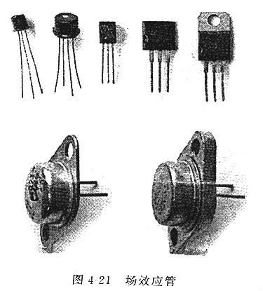 場(chǎng)效應(yīng)晶體管通常簡(jiǎn)稱為場(chǎng)效應(yīng)管,是一種應(yīng)用場(chǎng)效應(yīng)原理工作的半導(dǎo)體器件,外形如圖4-21所示。和普通雙極型晶體管相比擬,場(chǎng)效應(yīng)管具有輸入阻抗高、噪聲低、動(dòng)態(tài)范圍大、功耗小、易于集成等特性,得到了越來越普遍的應(yīng)用。
