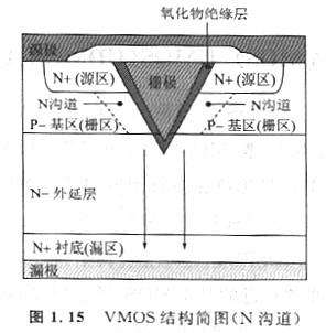 最先應(yīng)用的槽柵構(gòu)造的剖面外形與英文字母“v”很類似(圖1. 15),VMOS的最初稱號(hào)就是由此而來(lái),它是“V-groove Vertical Metal Oxide Semiconduc-tor”的縮寫,曾經(jīng)簡(jiǎn)稱為“VVMOS”,至今依然可以在一些公開的材料中見到。這種依據(jù)柵極(柵區(qū))的剖面外形停止的技術(shù)命名辦法也被沿用了下來(lái),以后陸續(xù)呈現(xiàn)了UMOS、πMOS等