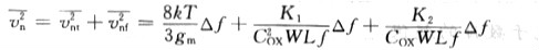 同時考慮熱噪聲和1/f噪聲時,MOS晶體管的噪聲電壓可表示為