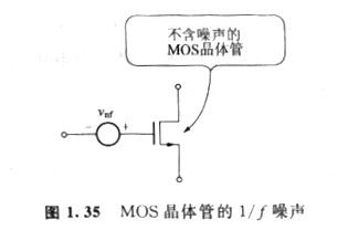 如圖1. 35所示,MOS晶體管1/f噪聲可以用不含噪聲的MOS晶體管以及接在柵極上的電壓源來表示,這時柵極換算噪聲電壓tνnf用下式給出: