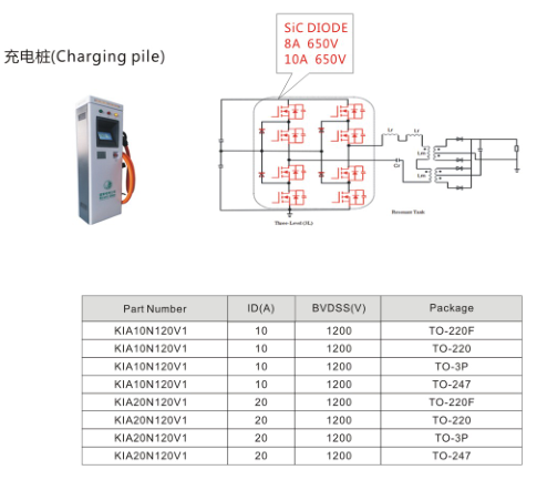 直流充電樁一般由通信模塊、開關電源模塊及控制模塊等構成。其中,MOSFET是開關電源模塊中最核心的部分,是實現電能高效率轉換,確保充電樁穩定不過熱的關鍵器件。交流電進入電樁后,MOSFET通過控制芯片來控制電流通斷,形成脈沖電流,再通過電感耦合轉換為新能源汽車需要的直流電源。