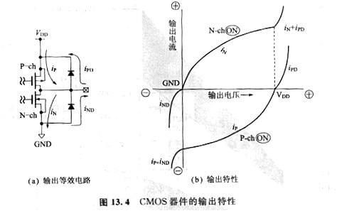 CMOS器件中,即便電源電壓的運用環境有很大變化,由于輸入電壓經常設計為電源電壓的l/2(50%Vcc),所以容易與其他器件接口,也能提供確??乖肼暼萘浚ň郍ND電平或者從電源電平)的性能。