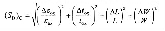 式(1.62)中,W、L別為電容上下極板的寬、長,ε0x為介質層的介電常數,tox為介質層的厚度。電容的標準偏差為
