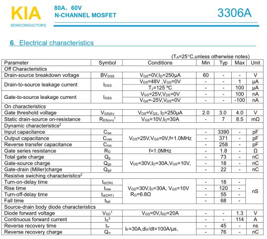 KIA100N03A、KIA3306A、KIA3306B、KIA4706A等