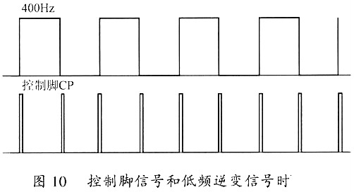 圖8是半橋驅(qū)動(dòng)門極信號(hào)的產(chǎn)生電路,其中的D觸發(fā)器、兩個(gè)與門和兩個(gè)或非門組合在一起用來(lái)減小驅(qū)動(dòng)信號(hào)的占空比。而這個(gè)功能由控制腳(CP)來(lái)控制,當(dāng)CP為高時(shí),驅(qū)動(dòng)的占空比就可以減小為大約原來(lái)的一半。這樣我們就可以在每個(gè)輸出電流換向的瞬間給CP一個(gè)高電平,減小驅(qū)動(dòng)的占空比,以大大減小甚至消除過(guò)沖電流。圖9為一個(gè)簡(jiǎn)單CP控制信號(hào)的產(chǎn)牛電路。圖10為腳CP信號(hào)與低頻逆變信號(hào)的時(shí)序圖。