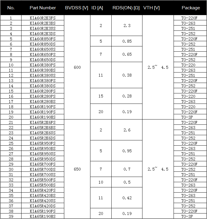 KIA半導(dǎo)體推出超結(jié)場(chǎng)效應(yīng)管(Super Junction MOSFET)