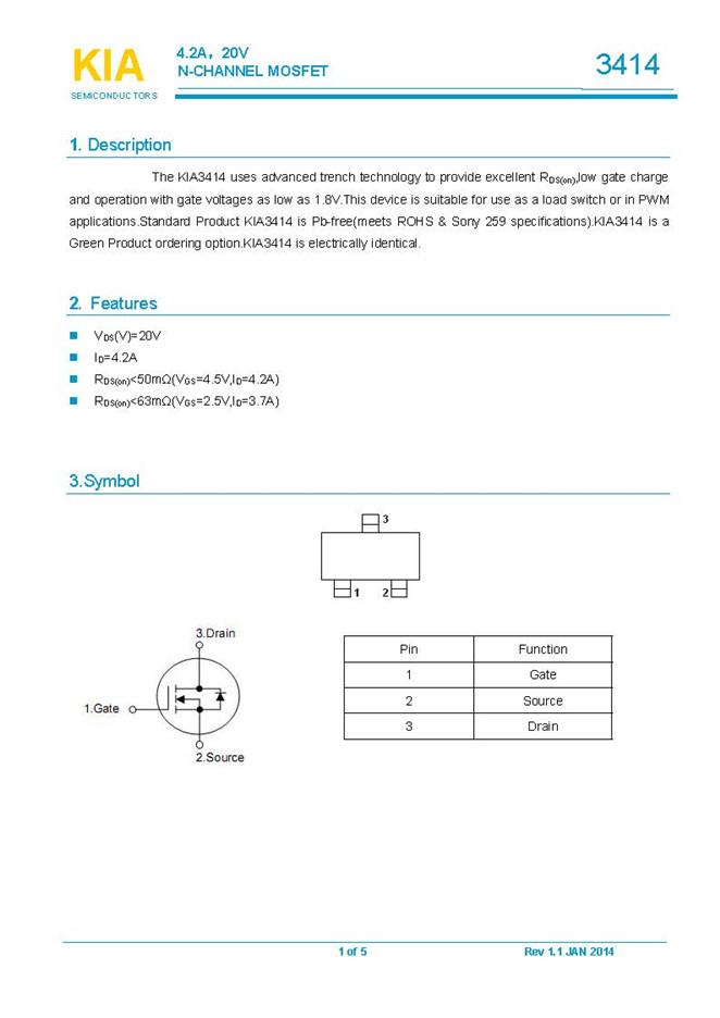 參數: ID(A): 4.2 BVDSS(V): 20 RDS(ON): 0.05 Qg(nC): 6.2 Package: SOT-23