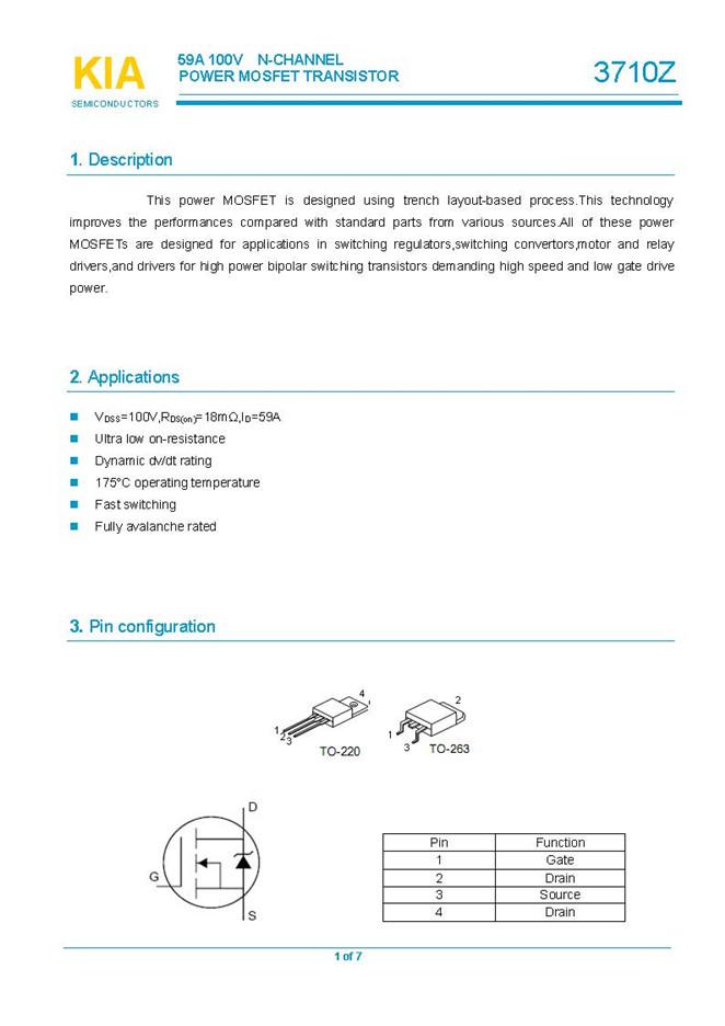 參數: ID(A): 59 BVDSS(V): 100 RDS(ON): 0.018 Qg(nC): 87 Package: TO-263、TO-220