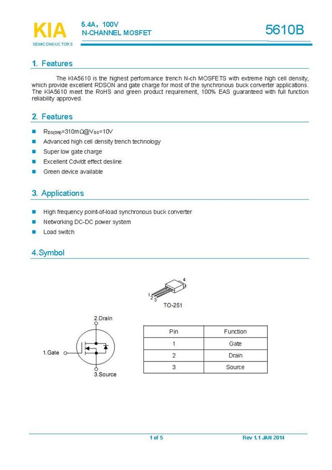 參數: ID(A): 5.4 BVDSS(V): 100 RDS(ON): 0.31 Qg(nC): 9.6 Package: TO-251