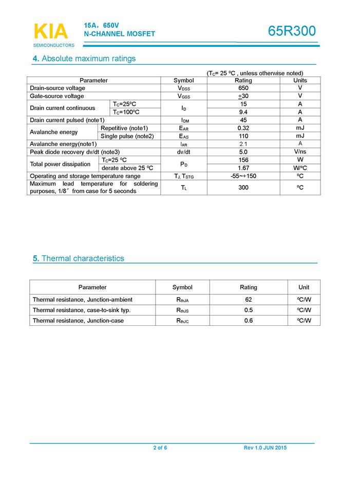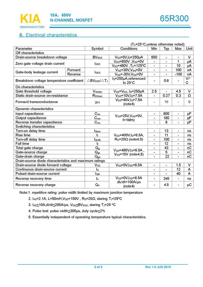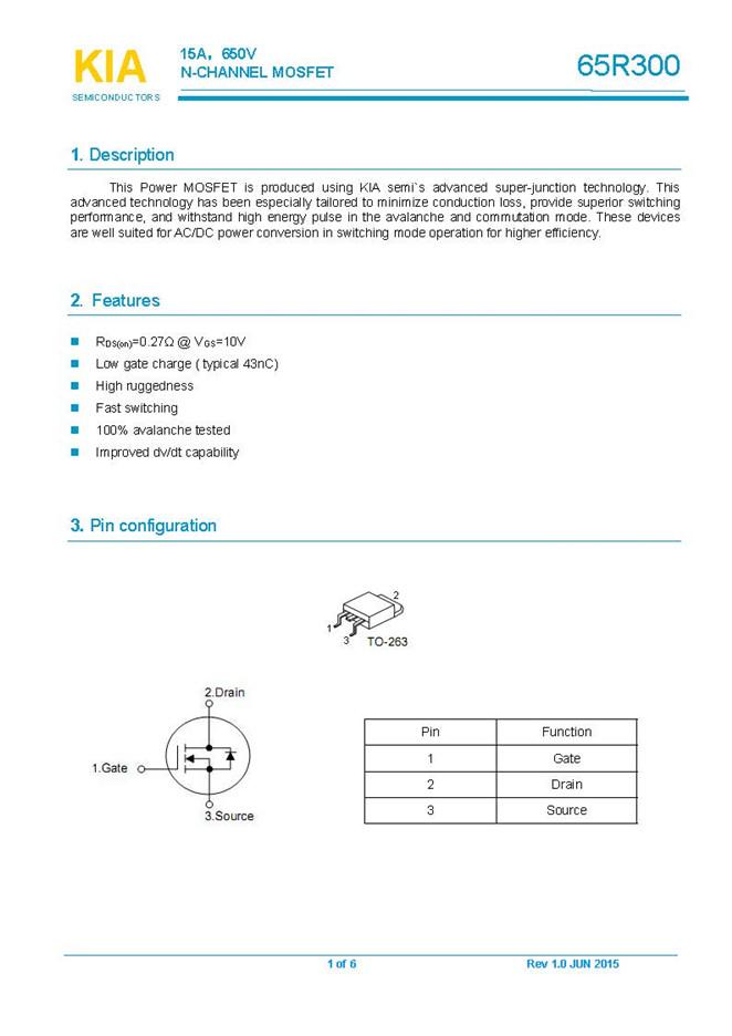 參數(shù): ID(A): 15 BVDSS(V): 650 RDS(ON): 0.27 Qg(nC): 43 Package: TO-263、220F