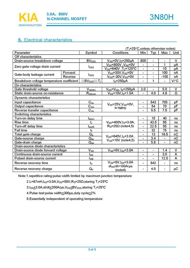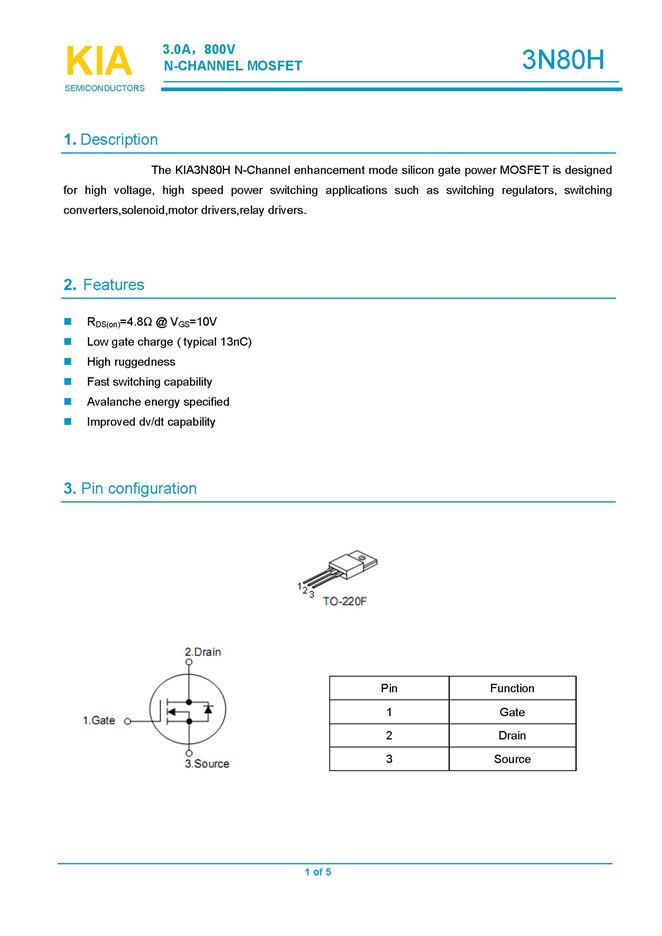 參數: ID(A): 3    BVDSS(V): 800    RDS(ON): 0.0048    Qg(nC): 13    Package: TO-220F