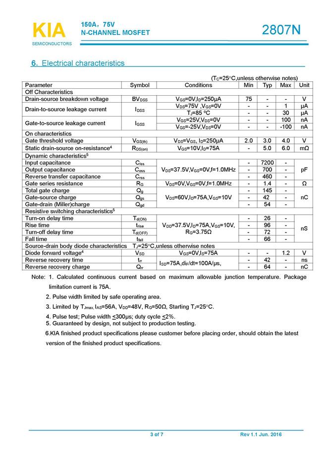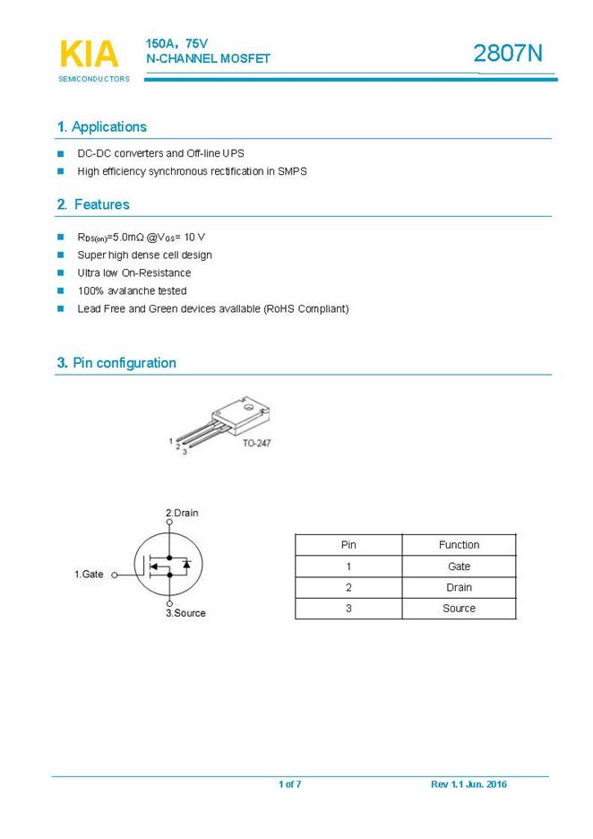 參數: ID(A): 150 BVDSS(V): 75 RDS(ON): 0.005 Qg(nC): 145 Package: TO-247
