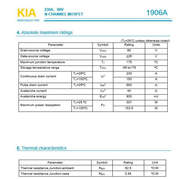 參數: ID(A): 230 BVDSS(V): 60 RDS(ON): 0.0027 Qg(nC): 172 Package: TO-247