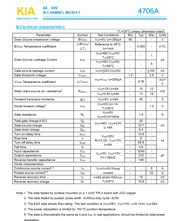 參數: ID(A): 8 BVDSS(V): 60 RDS(ON): 0.01 Qg(nC): 30 Package: sop-8