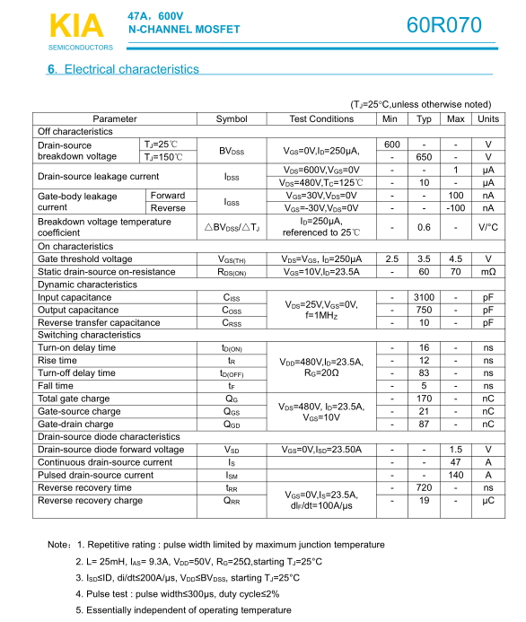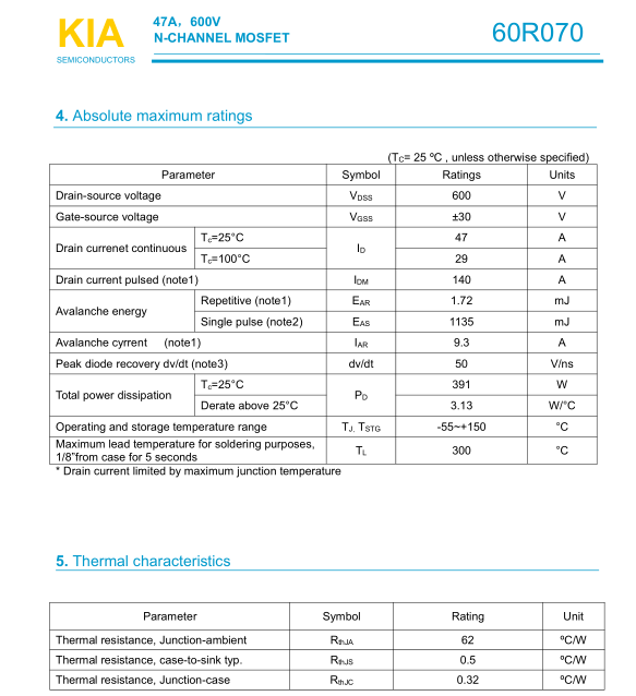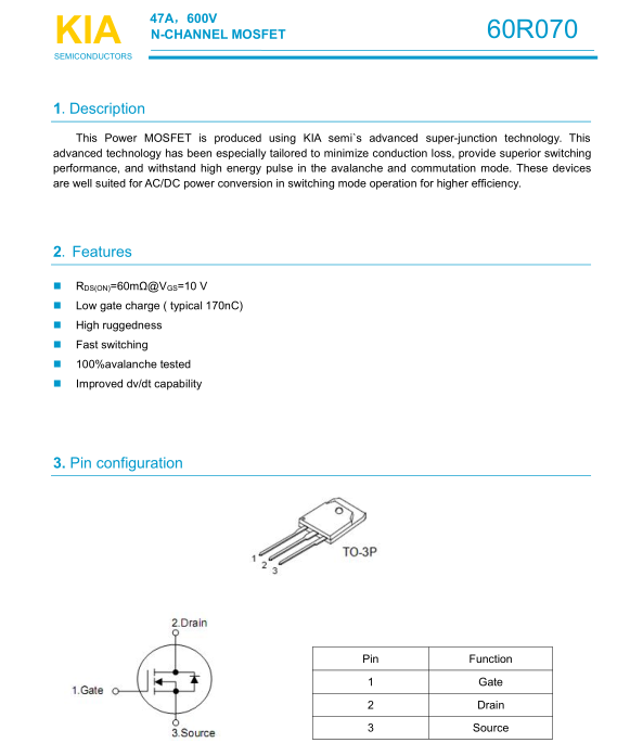 參數(shù): ID(A): 47 BVDSS(V): 600 RDS(ON): 0.06 Qg(nC): 170 Package: TO-3P