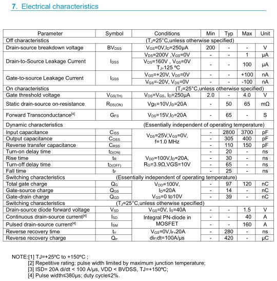 參數: ID(A): 40 BVDSS(V): 200 RDS(ON): 0.65 Qg(nC): 97 Package: TO-220