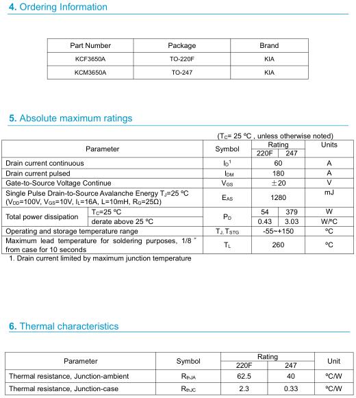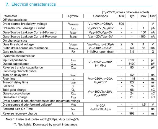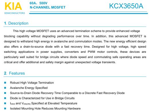 參數: ID(A): 60    BVDSS(V): 500    RDS(ON): 0.056    Qg(nC): 66    Package: TO-220F、247