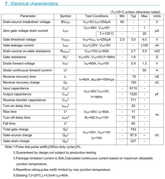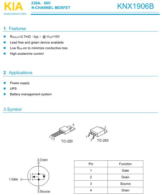 參數: ID(A): 230 BVDSS(V): 60 RDS(ON): 2.7 Qg(nC): 742 Package: TO-263
