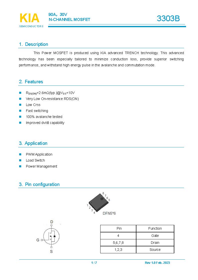 參數: ID(A): 90    BVDSS(V): 30    RDS(ON): 2.6    Qg(nC): 70    Package: DFN5*6