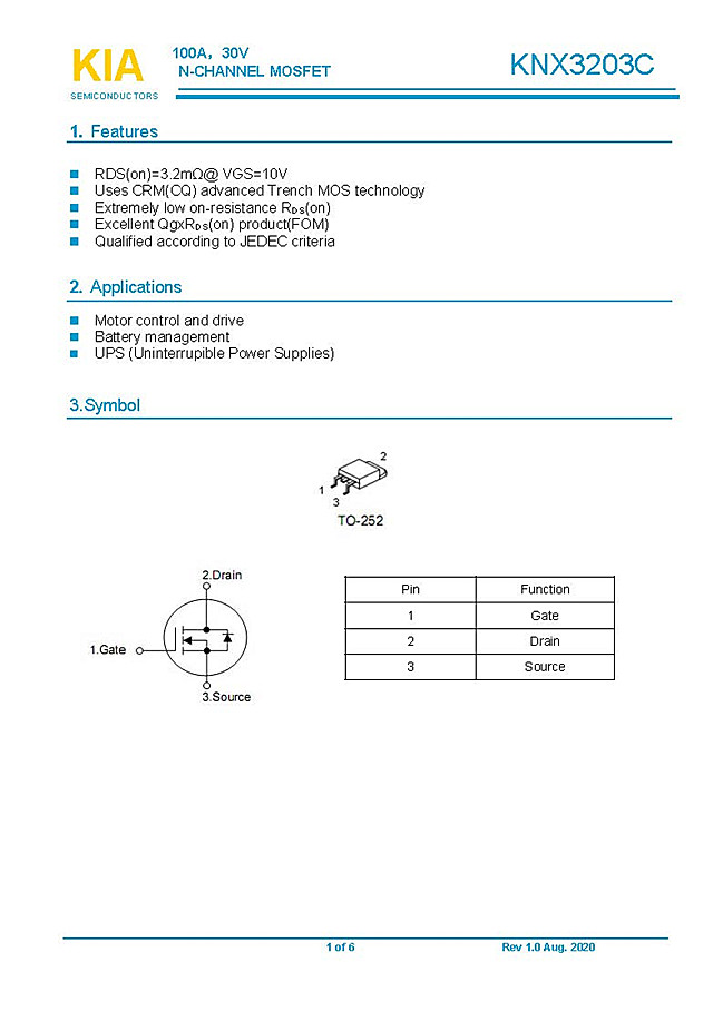 參數: ID(A): 100    BVDSS(V): 30    RDS(ON): 3.2    Qg(nC): 68    Package: TO-252