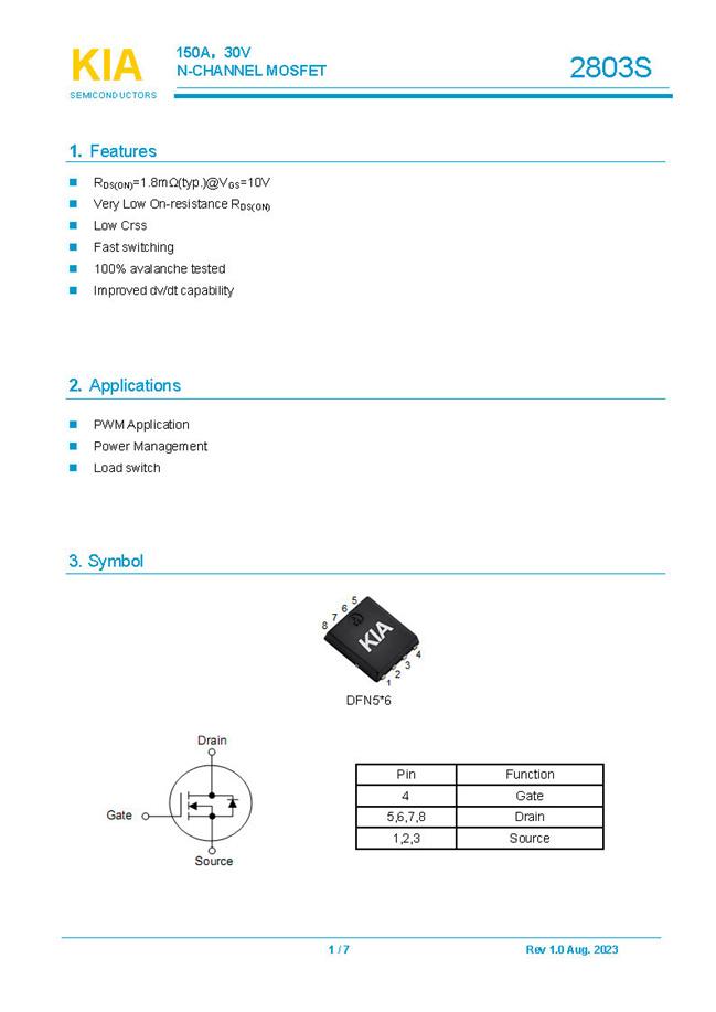 參數(shù): ID(A): 150 BVDSS(V): 30 RDS(ON): 1.8 Qg(nC): 112 Package: DFN5*6