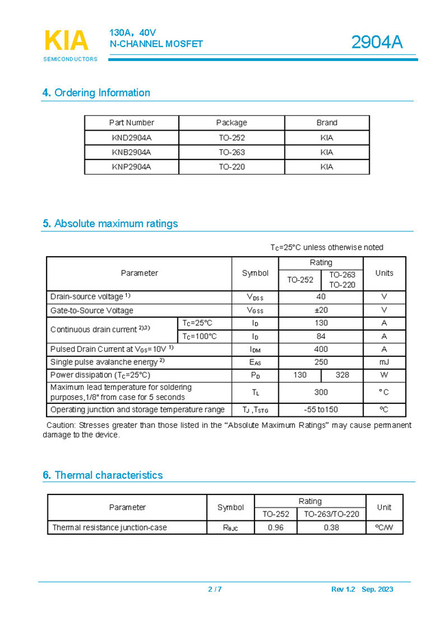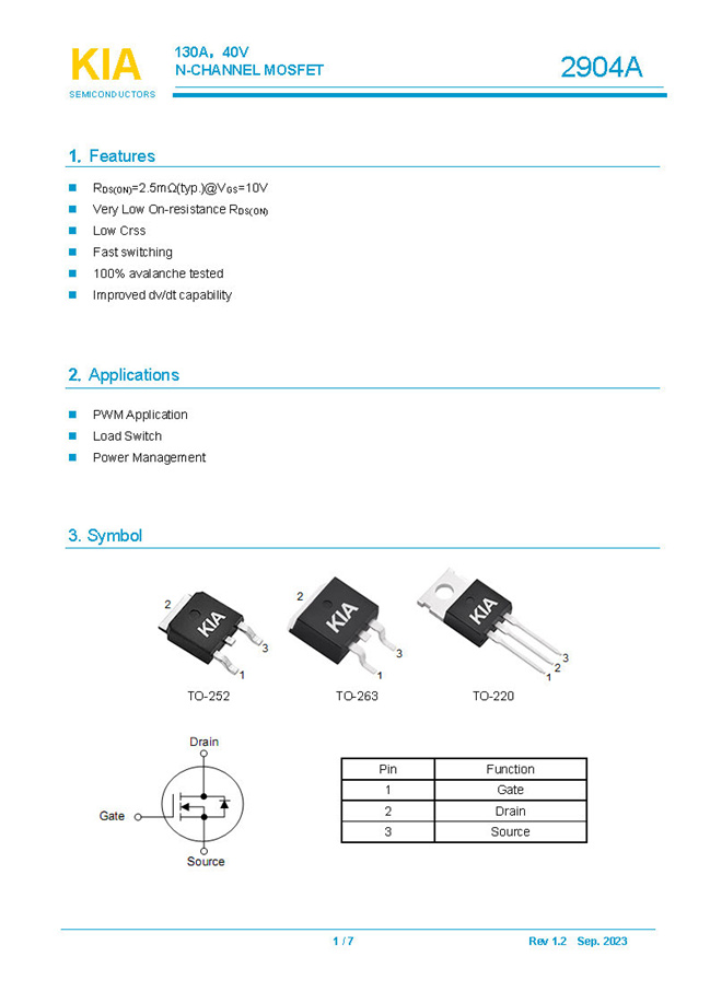 參數: ID(A): 130 BVDSS(V): 40 RDS(ON): 2.5 Qg(nC): 135 Package: TO-252.TO-263.TO-220