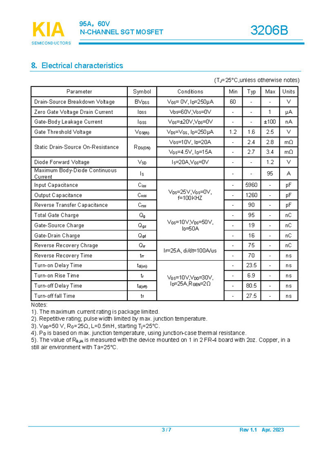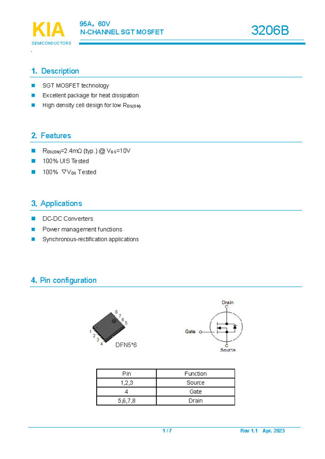 參數(shù): ID(A): 95 BVDSS(V): 60 RDS(ON): 2.4mΩ Qg(nC): 95 Package: DFN5*6