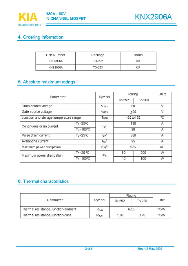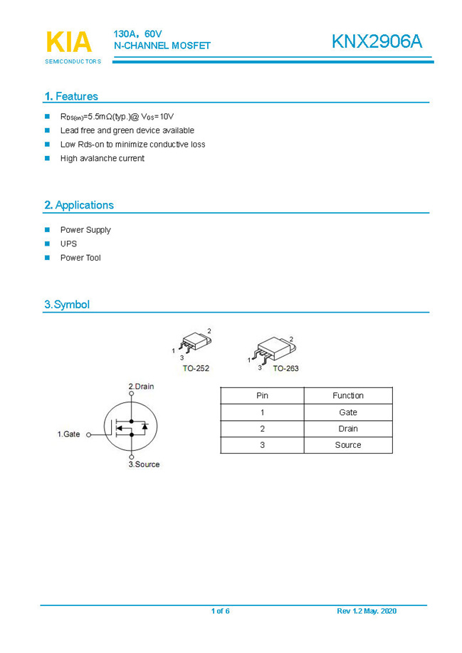 參數: ID(A): 130 BVDSS(V): 60 RDS(ON): 5.5mΩ Qg(nC): 66.34 Package: TO-252.TO-263