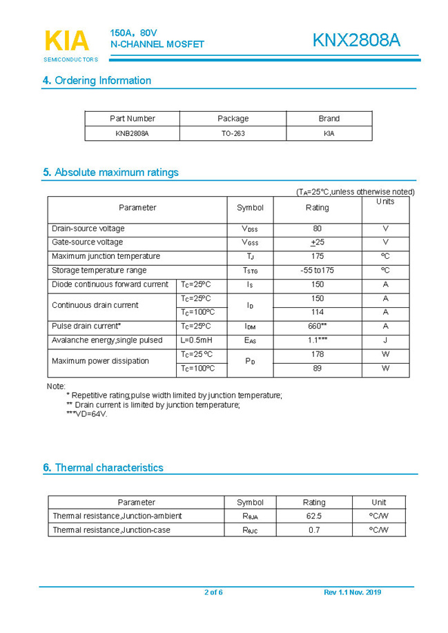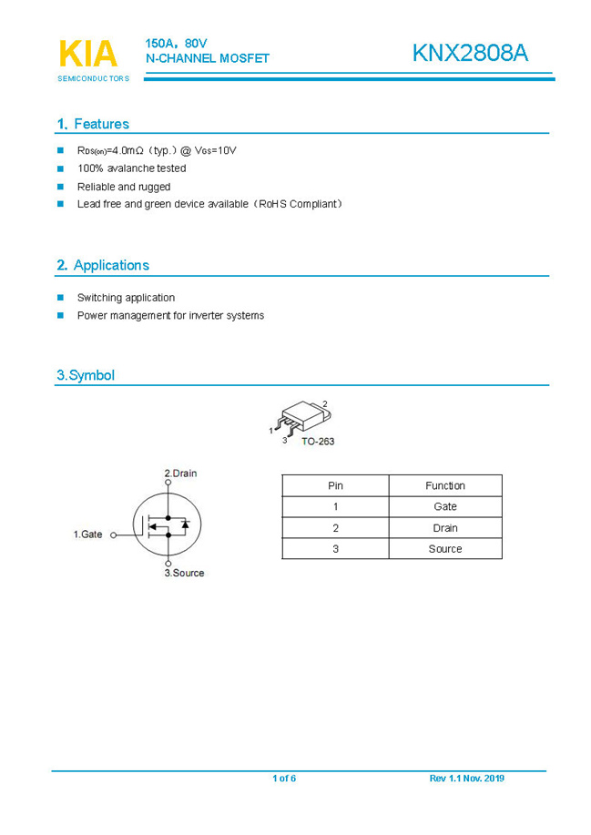 參數(shù): ID(A): 150 BVDSS(V): 80 RDS(ON): 4.0mΩ Qg(nC): 152 Package: TO-263