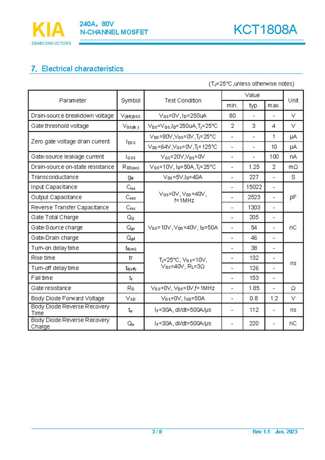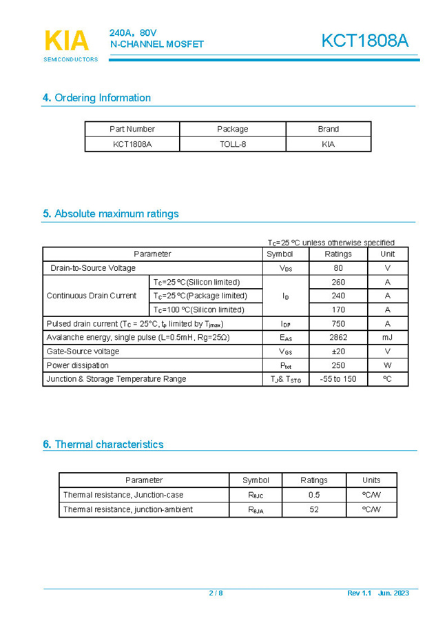 參數: ID(A): 240    BVDSS(V): 80    RDS(ON): 1.25mΩ    Qg(nC): 205    Package: TOLL-8