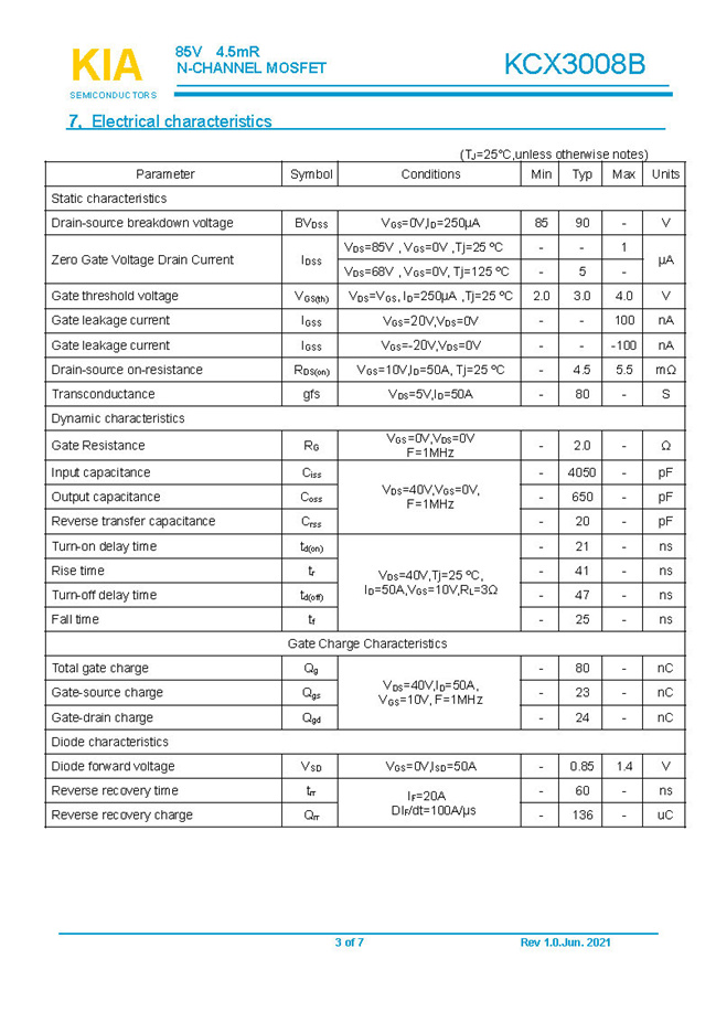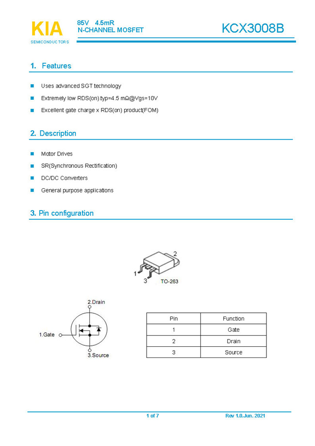 參數(shù): ID(A): 160 BVDSS(V): 85 RDS(ON): 4.5mΩ Qg(nC): 80 Package: TO-263