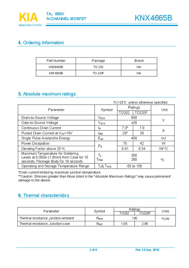 參數: ID(A): 7 BVDSS(V): 650 RDS(ON): 1.1Ω Qg(nC): 24 Package: TO-220F.TO-252