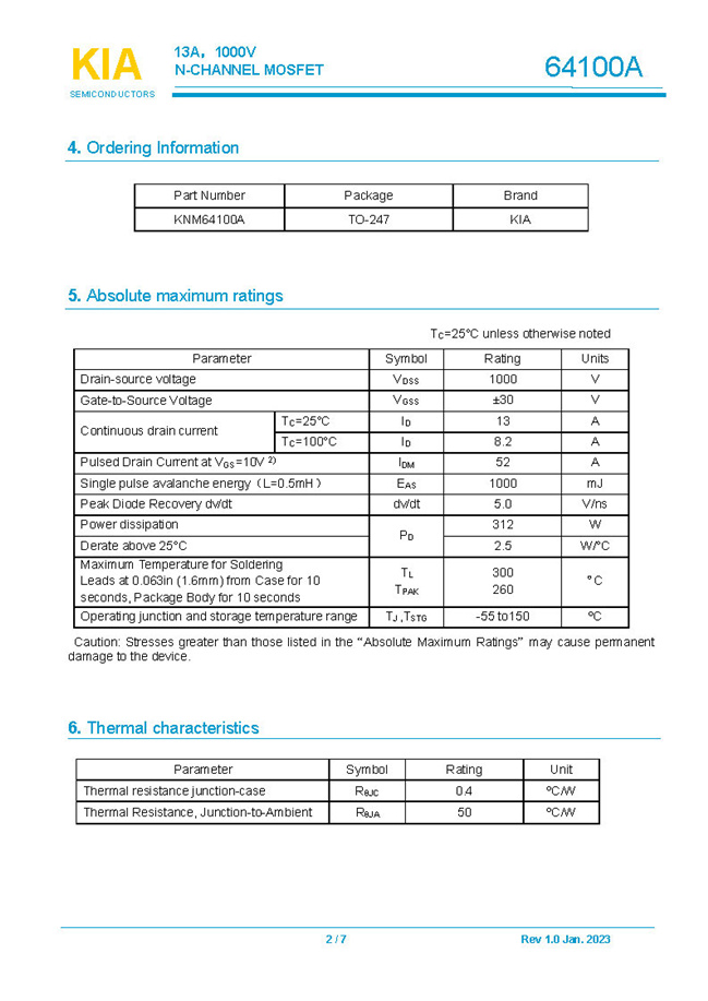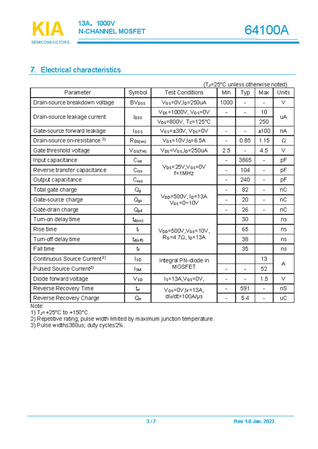 參數: ID(A): 13 BVDSS(V): 1000 RDS(ON): 0.85Ω Qg(nC): 82 Package: TO-247