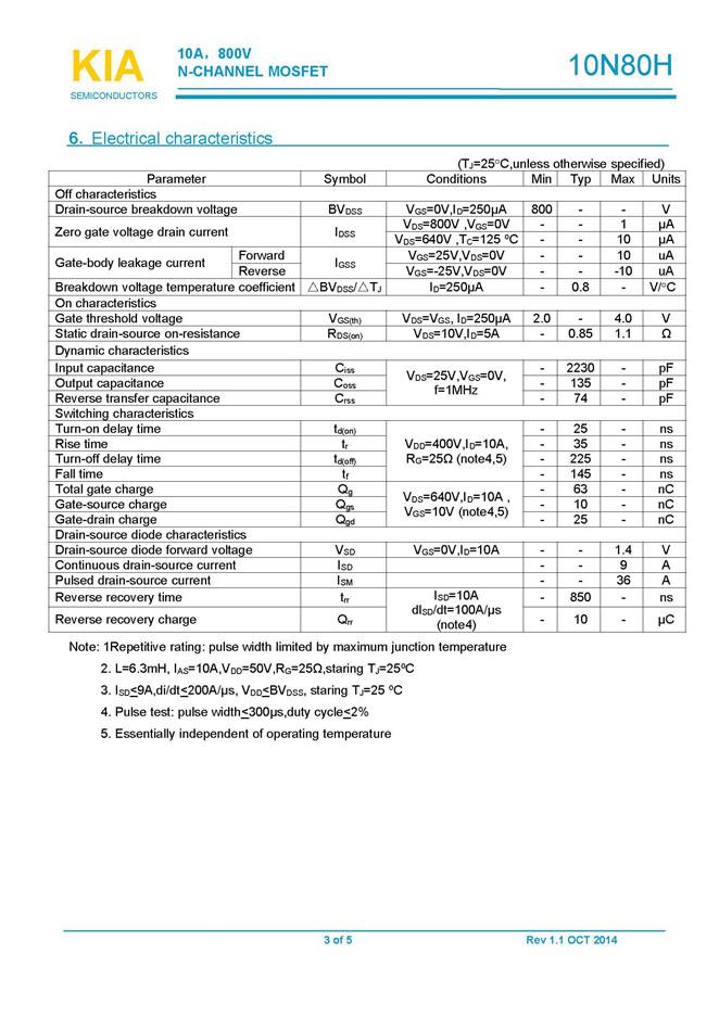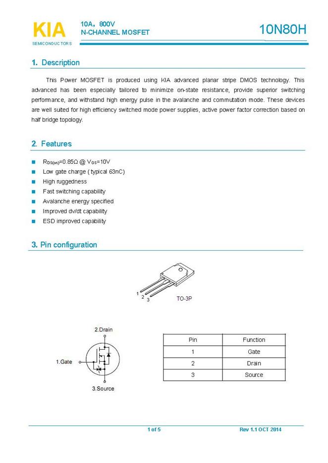 參數: ID(A): 10    BVDSS(V): 800    RDS(ON): 1.1    Qg(nC): 63    Package: TO-3P TO-220F